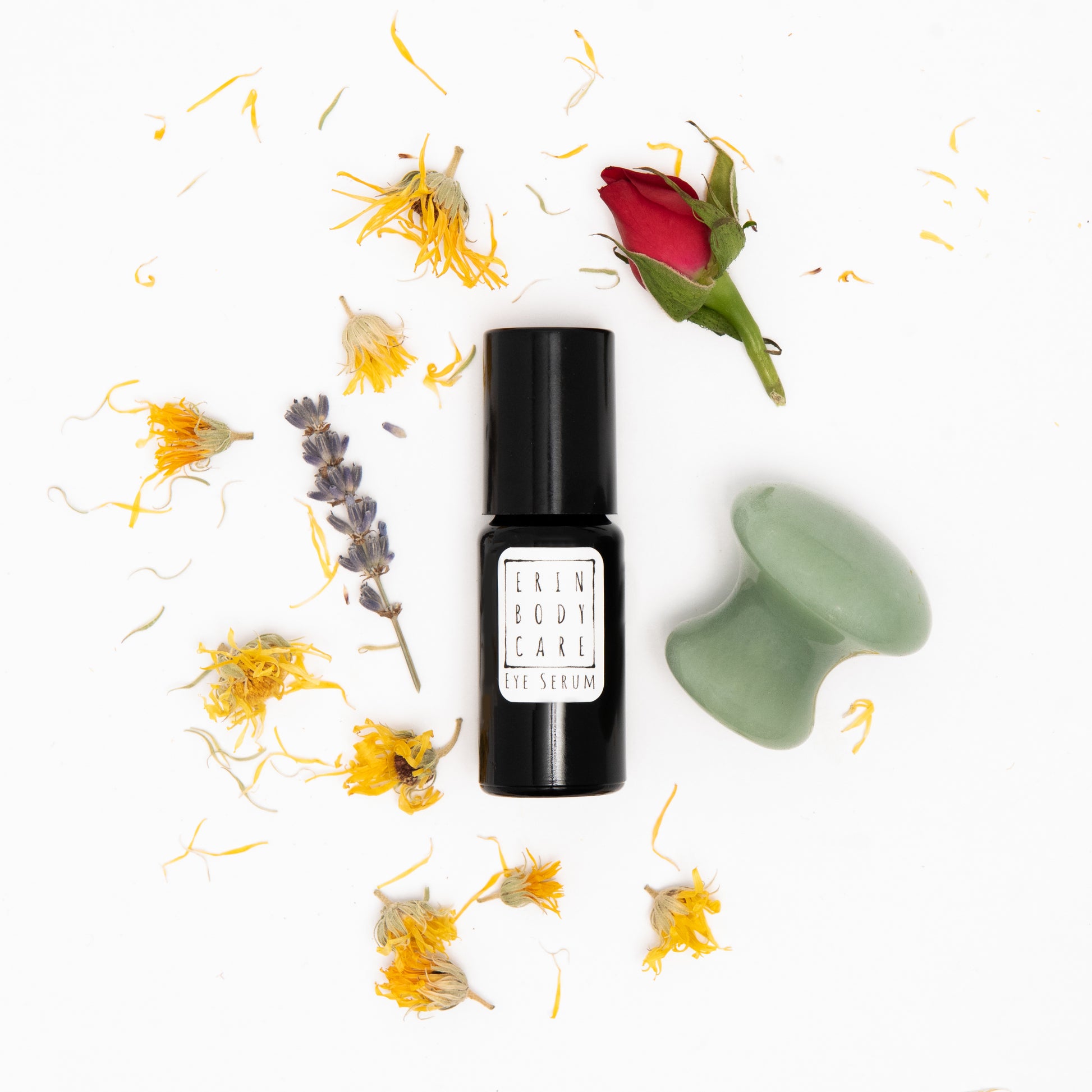 Our Eye Serum and the Mount Lai Jade De-puffing Eye Massage Tool.